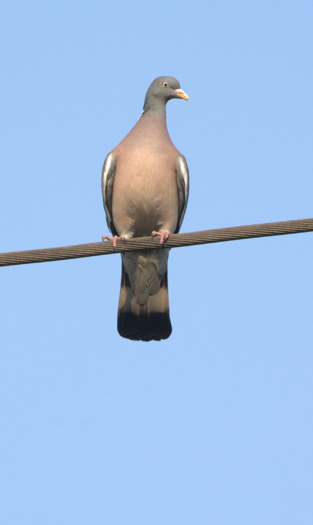Eine Ringeltaube auf der Speiseleitung. 06.04.2014 16:50 Uhr