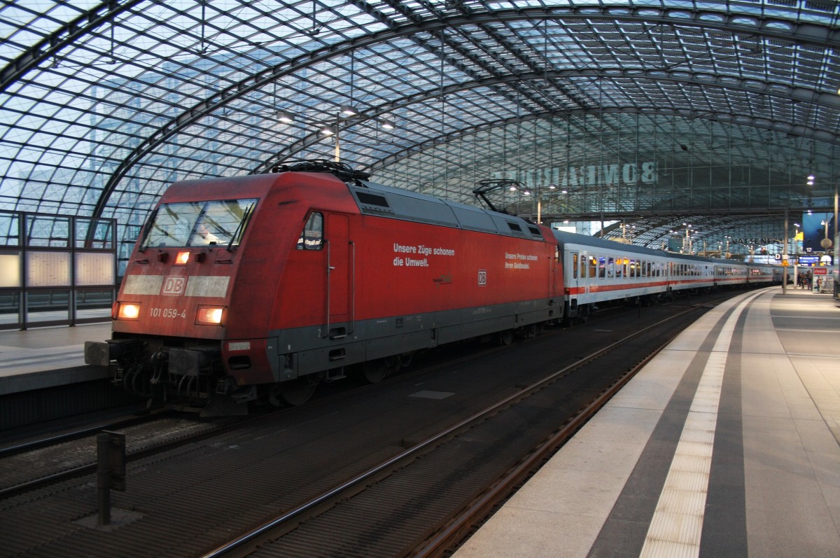Hier 101 059-4 mit IC2242 von Berlin Ostbahnhof nach Osnabrück Hbf., dieser Zug stand am 29.3.2014 in Berlin Hbf.