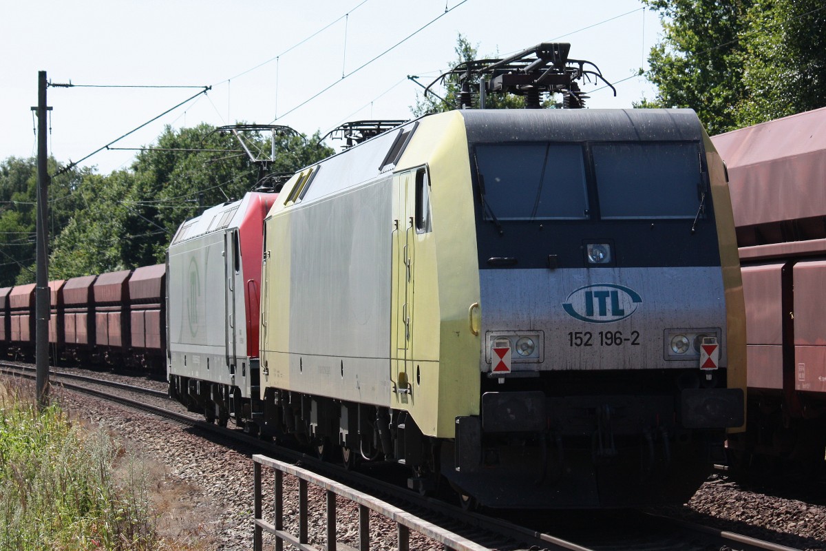 ITL 152 196 am 22.7.13 gezogen von ITL 185 598 in Hamburg-Moorburg.