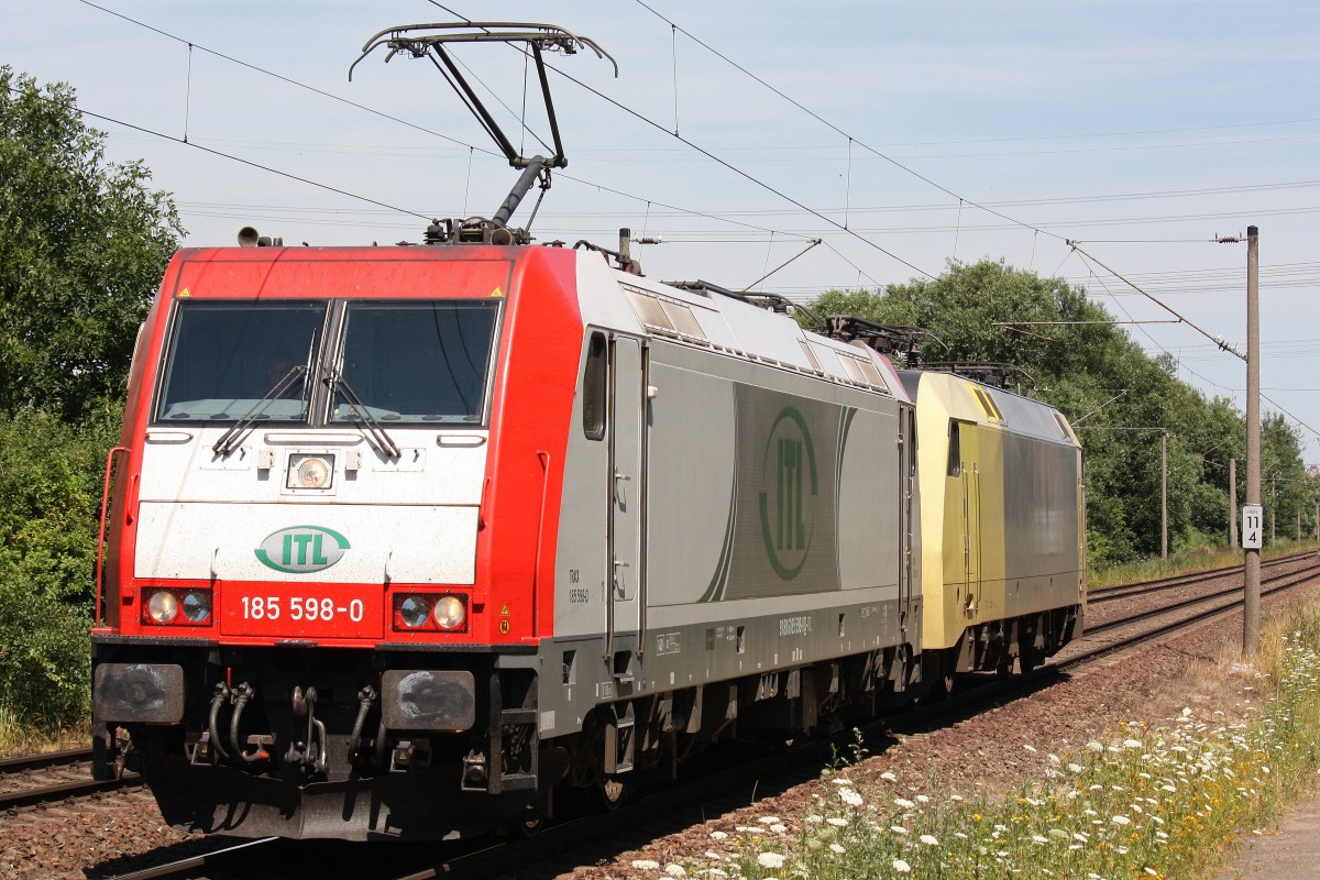 ITL 185 598 am 22.7.13 mit ITL 152 196 in Hamburg-Moorburg.