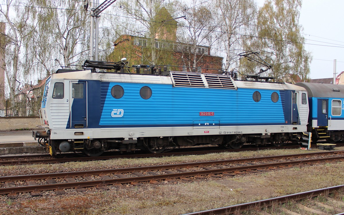 Lokportrait von der 362 045-6, die am 05.04.2014 mit dem R 610 aus Praha hl.n. im Zielbahnhof in Cheb ankommt.