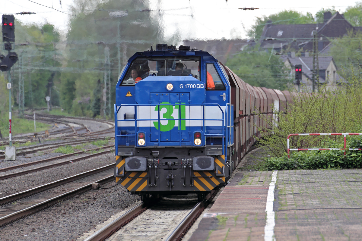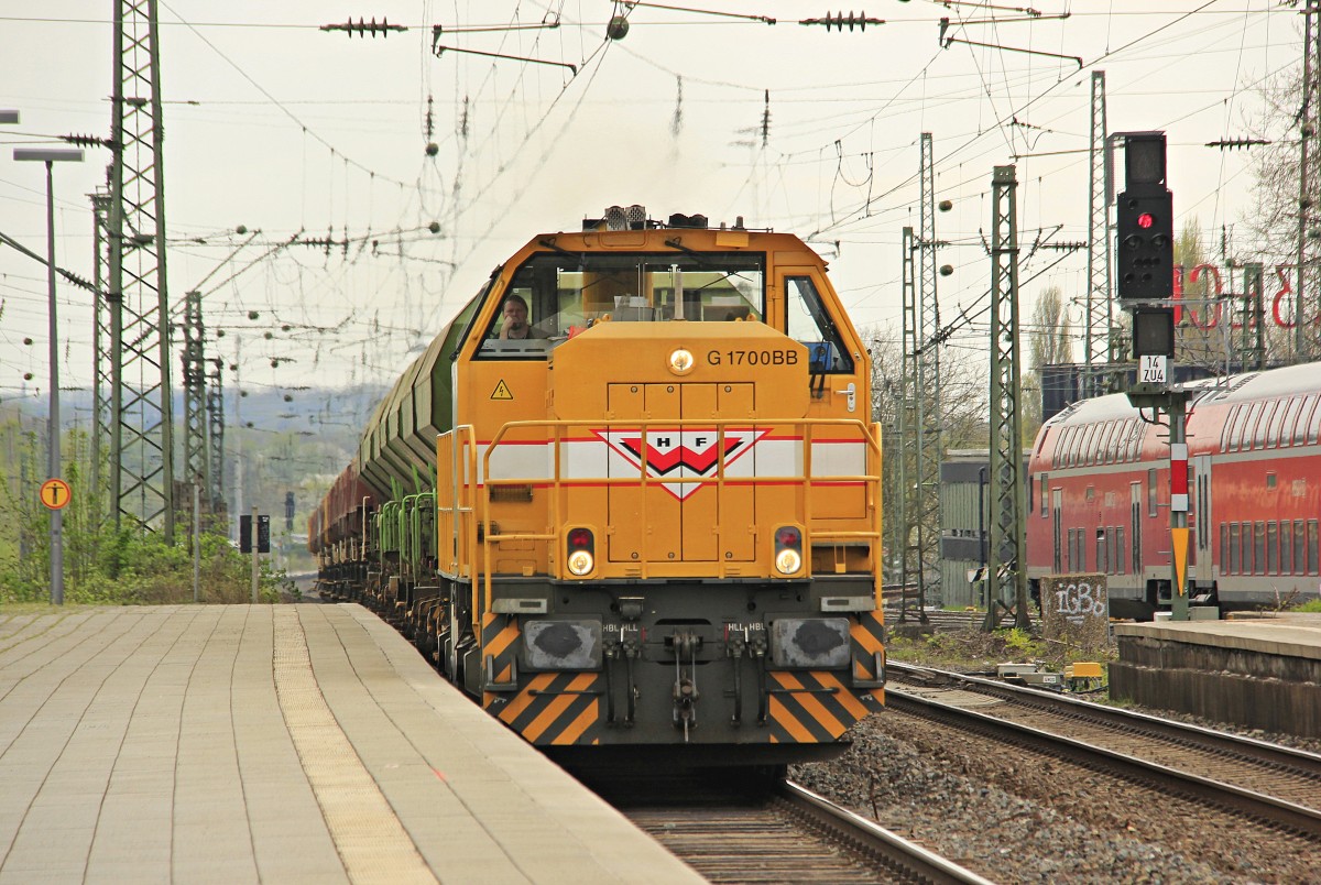 Wiebe G 1700BB mit einem Schotterzug am 28.04.2012 in Bochum Hbf.