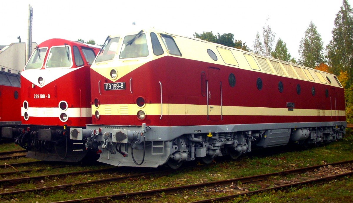 "Wer bist du denn?", fragt 229 188-8. "Ich bin die 119 199-8." "Quatsch du bist genauso eine modernisierte 229 wie ich, da nützt dir auch die DDR-Lackierung nichts. Weimar 13.10.2012