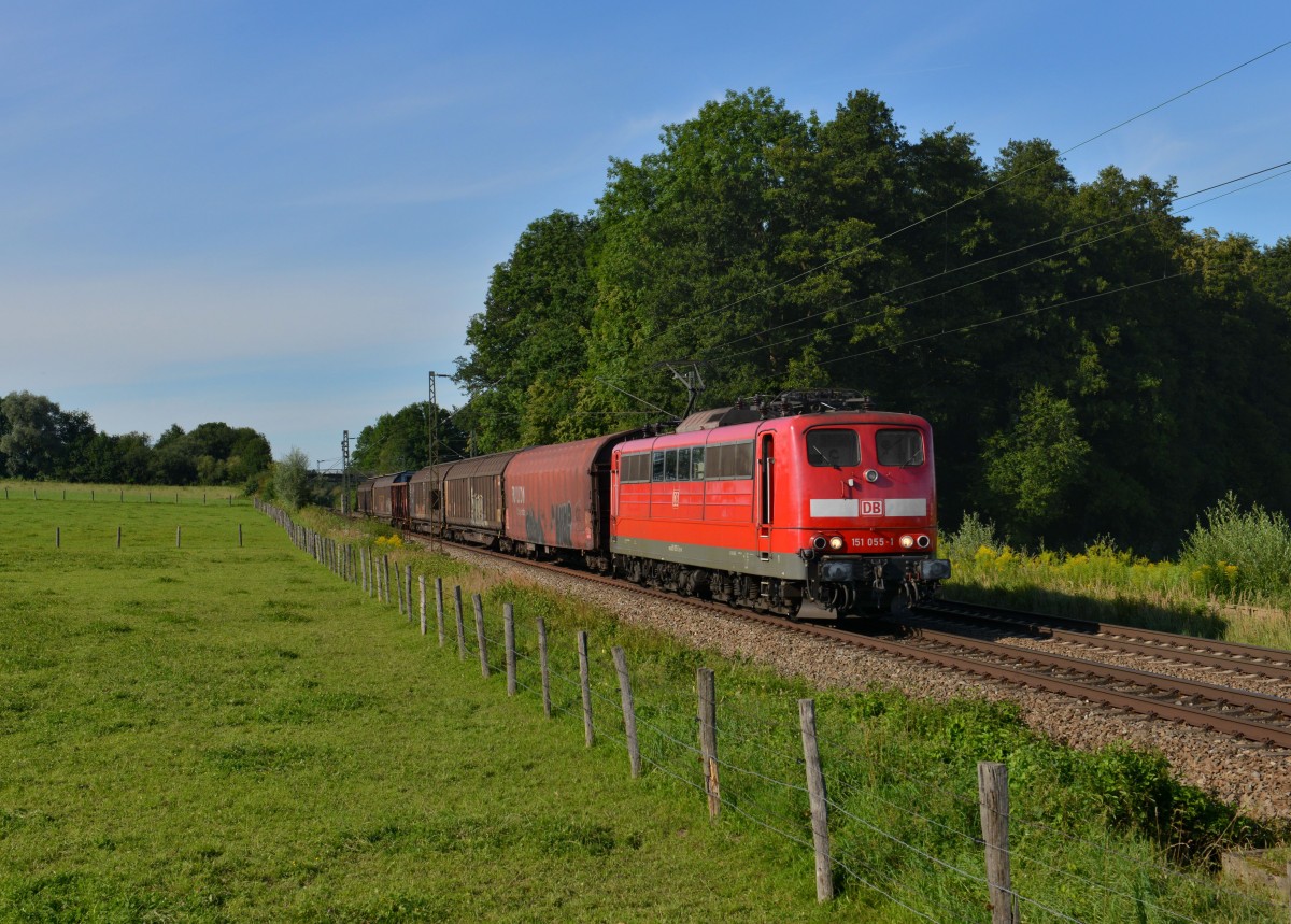 151 055 mit einem Güterzug am 08.08.2014 bei Vogl.