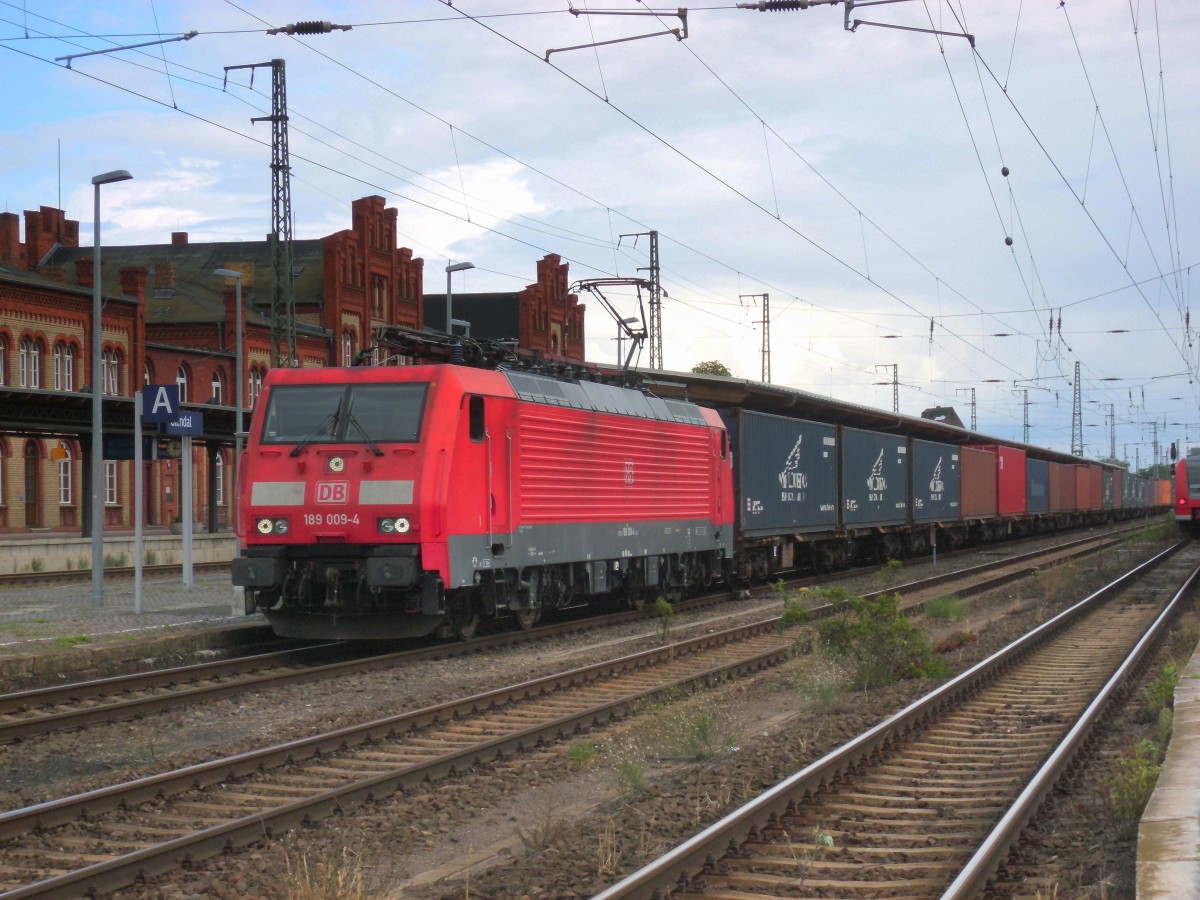 Am 16.08.2014 kam 189 009 mit einem Containerzug aus Richtung Magdeburg nach Stendal und fuhr weiter in Richtung Salzwedel.