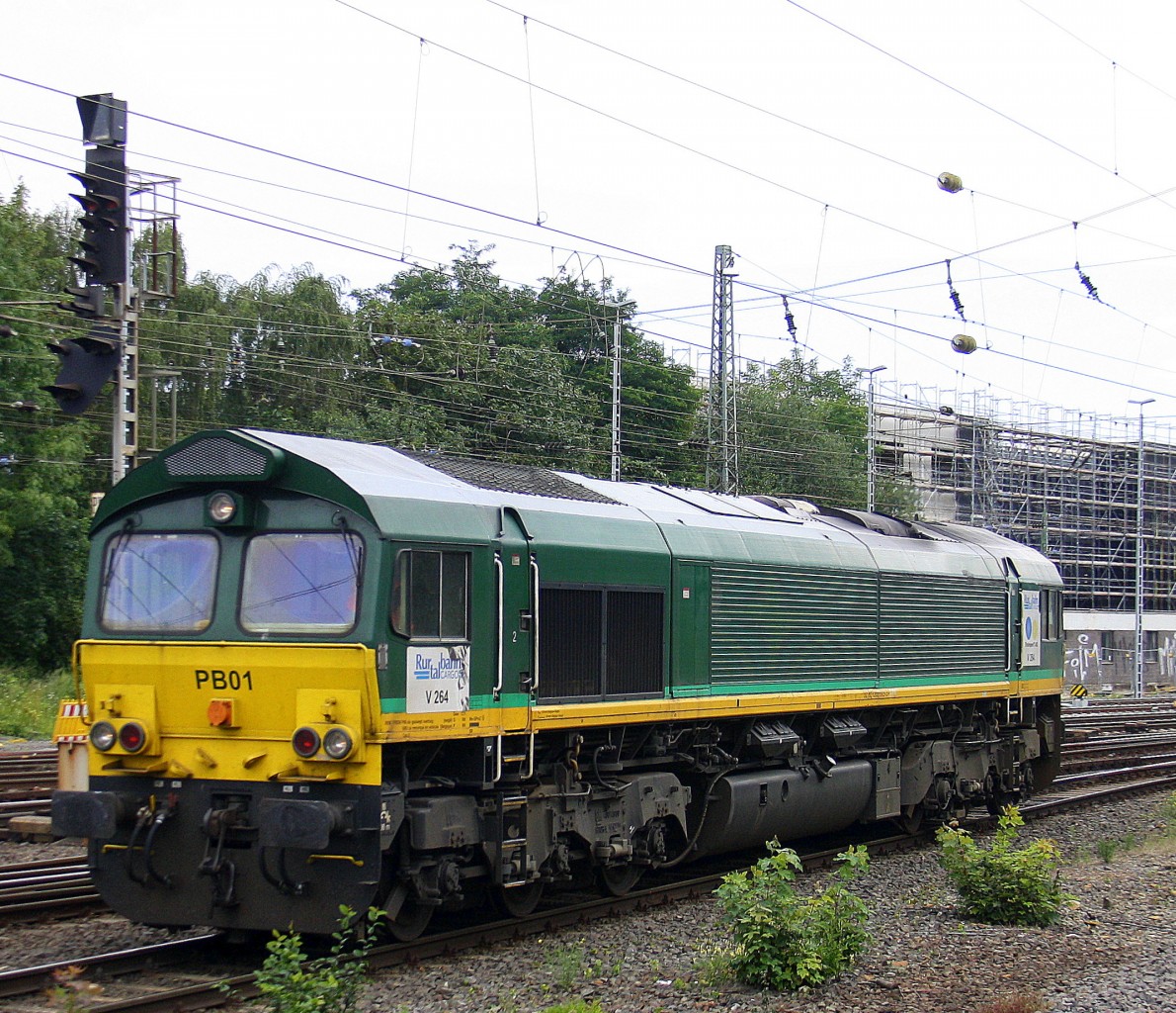 Die Class 66 PB01 von der Rurtalbahn-Cargo kommt als Lokzug aus Montzen(B) und fährt in Aachen-West ein.