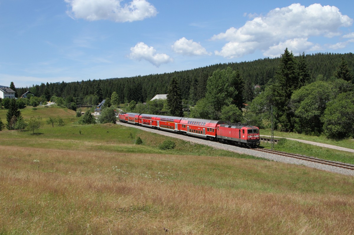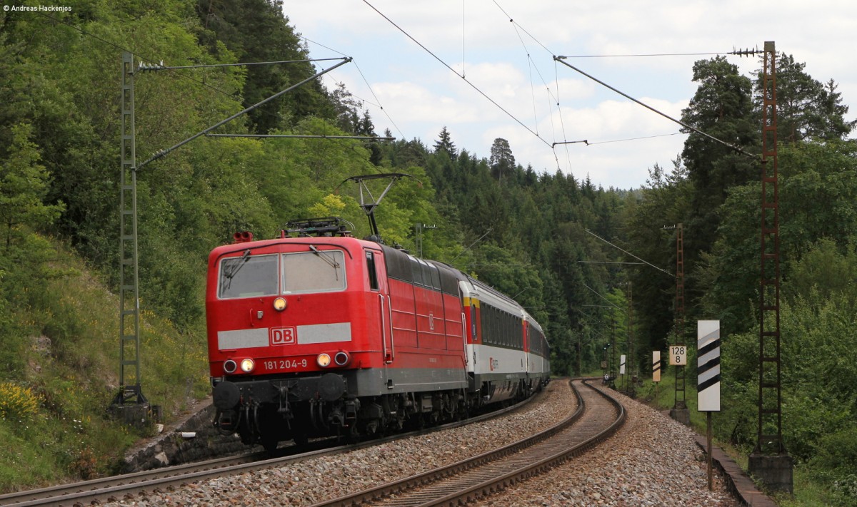 Am 01.08.2014 bespannte die 120 101-1 den EC 6 (Chur HB (Kurswagen)/Zürich HB - Hamburg-Altona), als sie nördlich vom Hp Kollmarsreute am Fotografen vorbei kam.