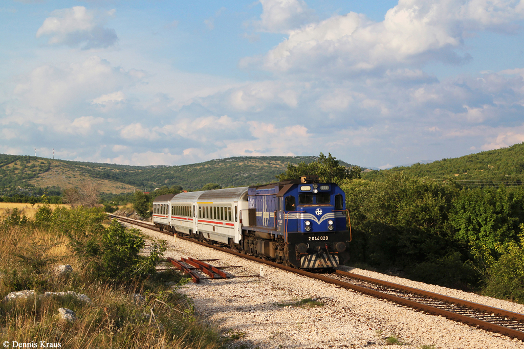 2044 027 mit Nachtzug D 15800 am 16.07.2014 bei Labin.