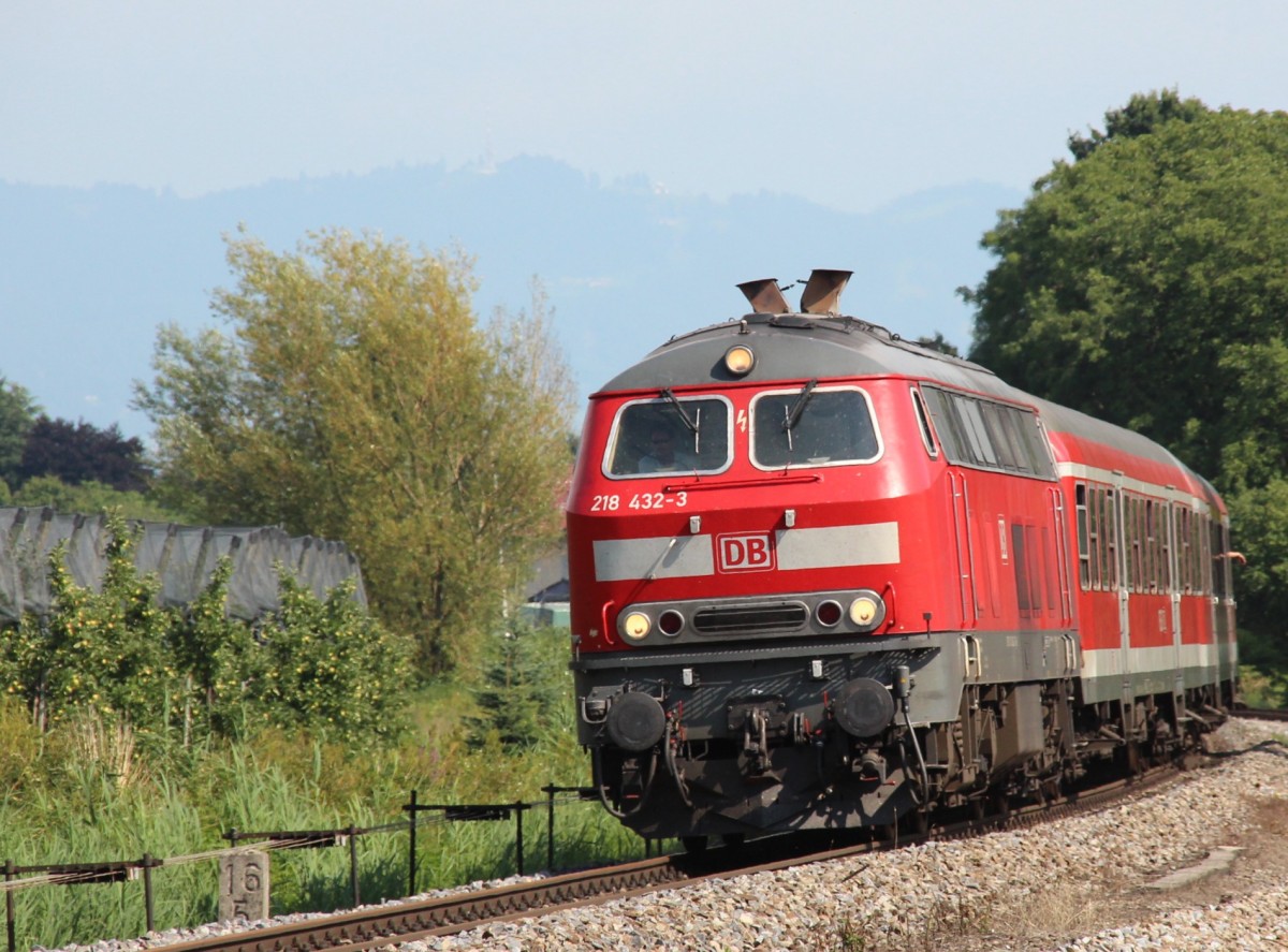 27.7.2014, Hochbetrieb in Lindau Hbf. 218 487 und 476 mit EC 1290 passieren in der Weichenstraße 421 375 während 218 456 + 495, die Einfahrt abwarten und dann zum Abstellen umsetzen.