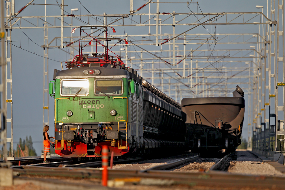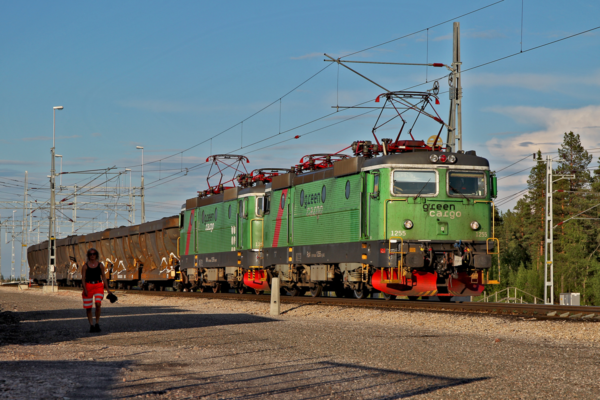 Am 21.7.2014 sind die beiden Rm 4 Loks 1255 und 1259 bei Snappavaara um einen geringen Erzzug an den Haken zu nehmen.