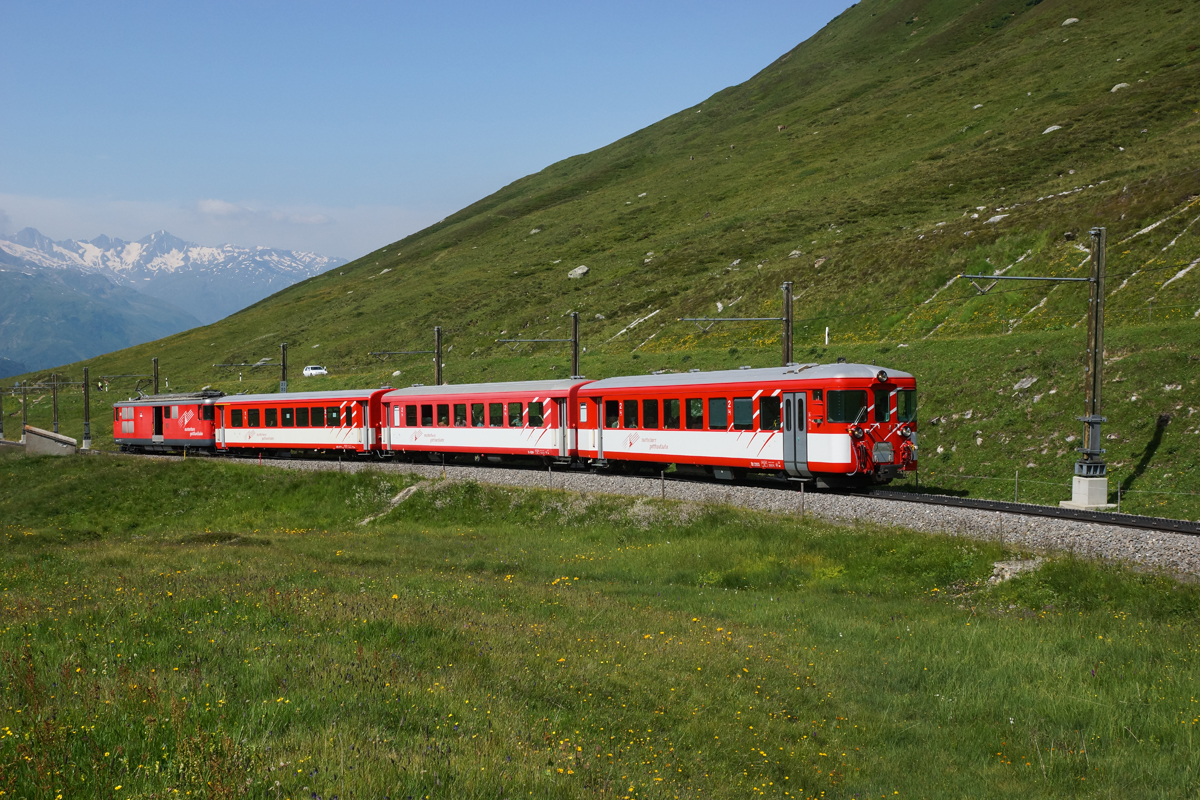 tpc / BVB - Personenzug nach Villars sur Ollon im Bergendbahnhof auf dem Col de Bretaye am 20.07.2014