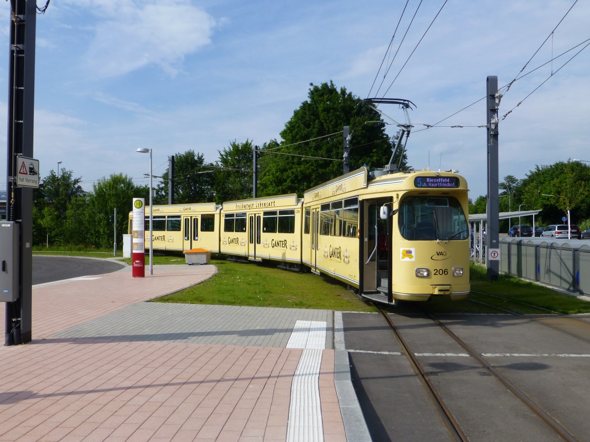 RNV MGT6D Wagen 3269 im RNV Lackierung am 25.07.14 in Heidelberg Bismarckplatz Wendeanlage