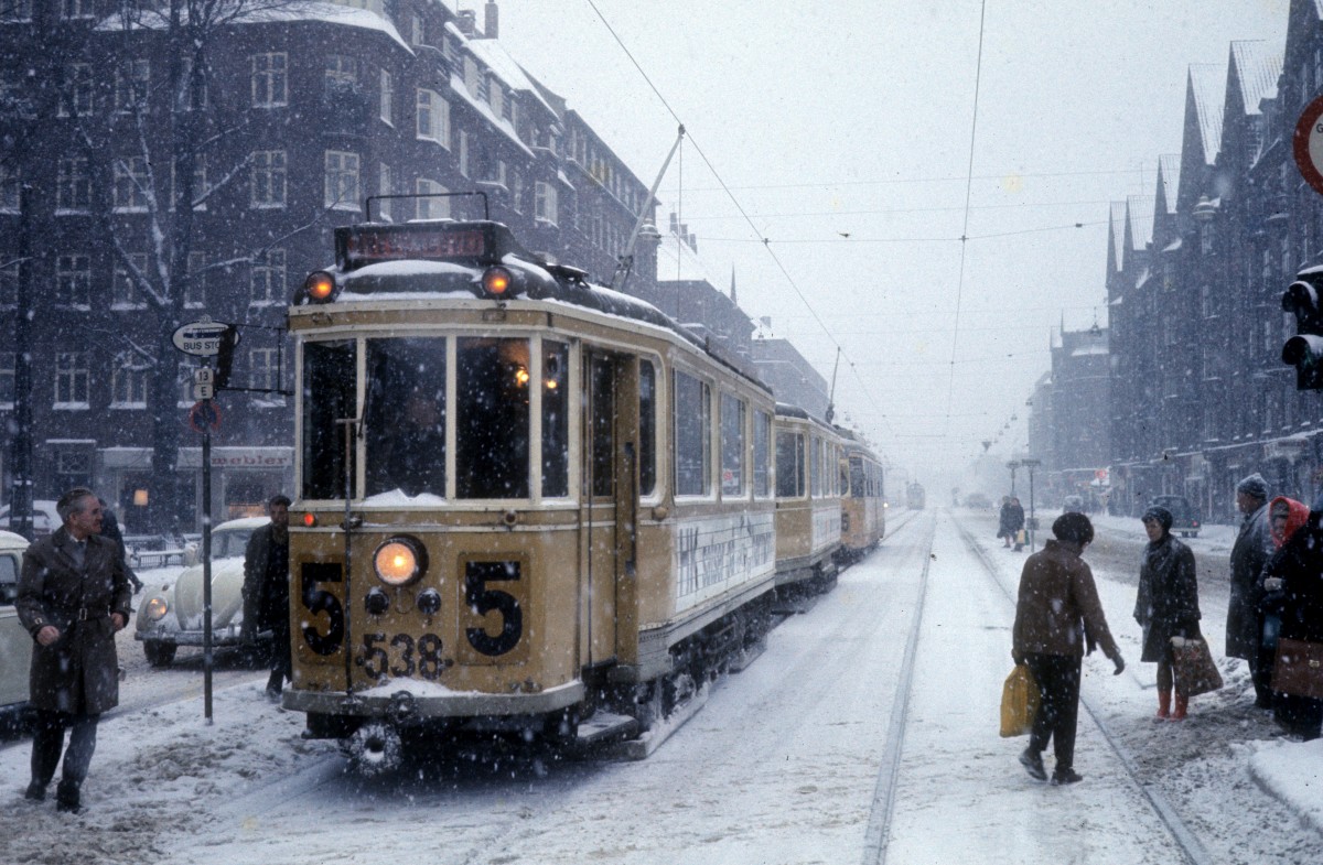 København / Kopenhagen Københavns Sporveje SL 5 (Grossraumtriebwagen 538) Amager Boulevard / Amagerbrogade im Februar 1969.