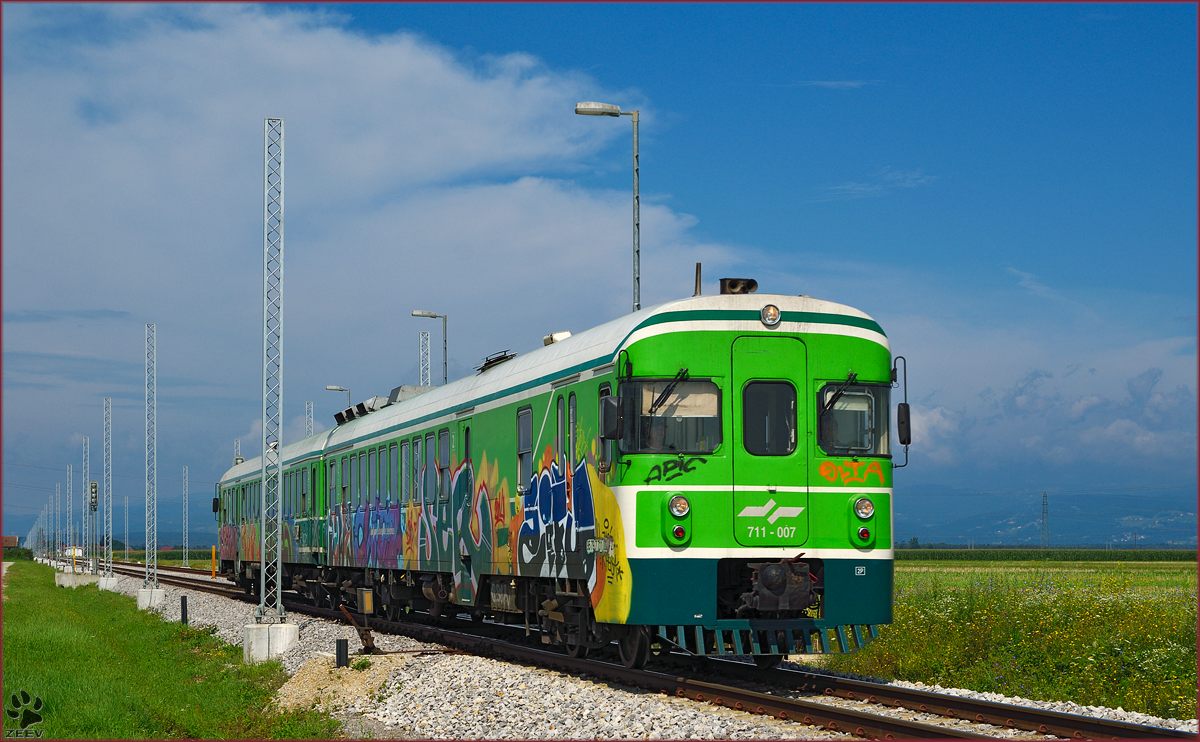 SŽ 711-007 fährt durch Cirkovce-Polje Richtung Murska Sobota. /29.7.2014