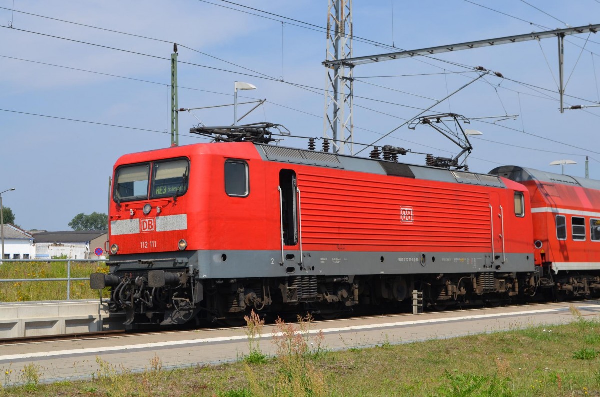 112 111-0 in Pasewalk als RE3 nach Elsterwerda 20.07.2014