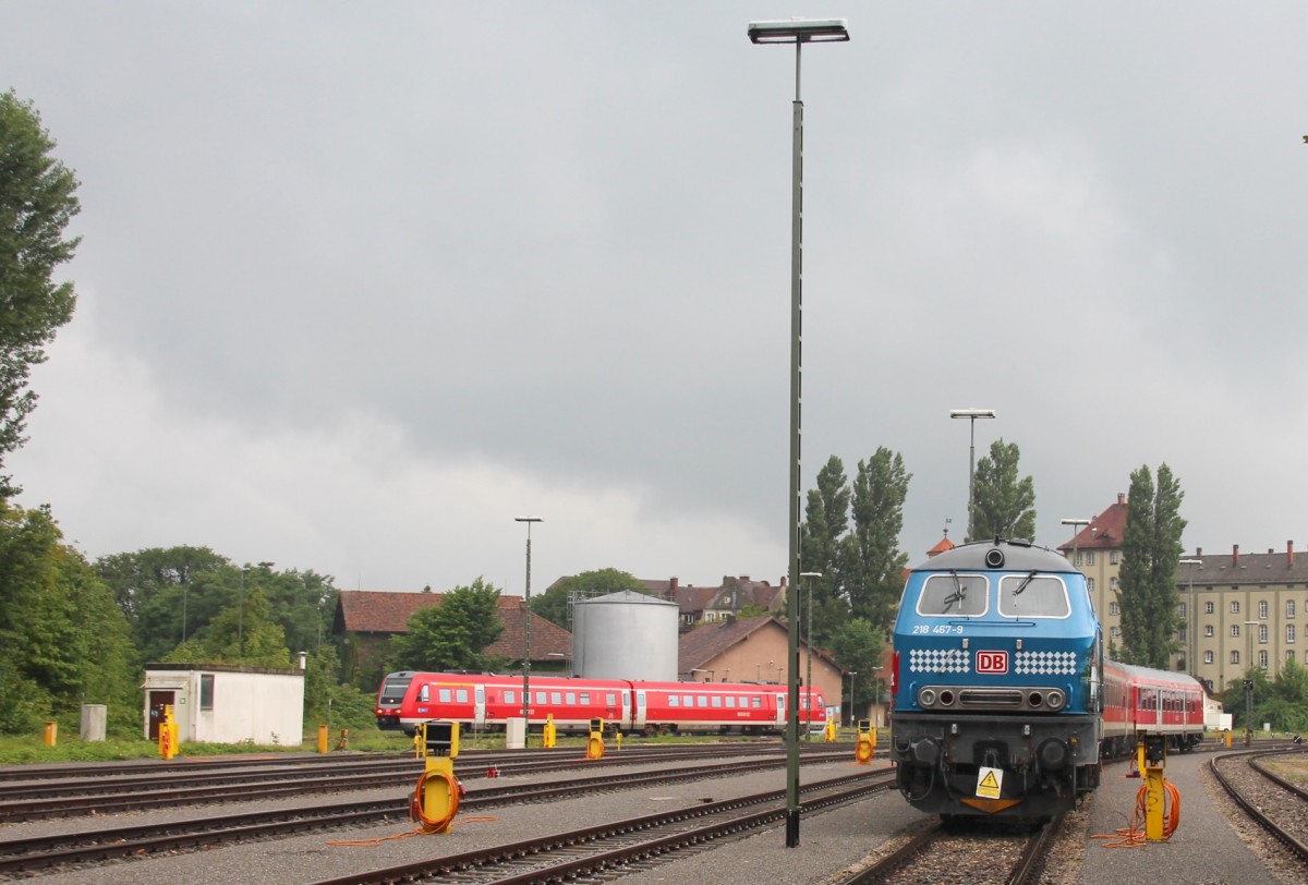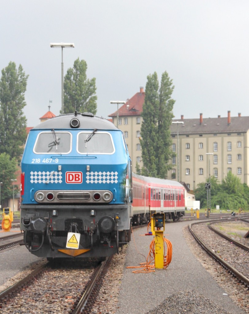 26.7.2014 Lindau Hbf. 218 467 abgestellt. (durch die Büsche vom Schützingerring aus gesehen)