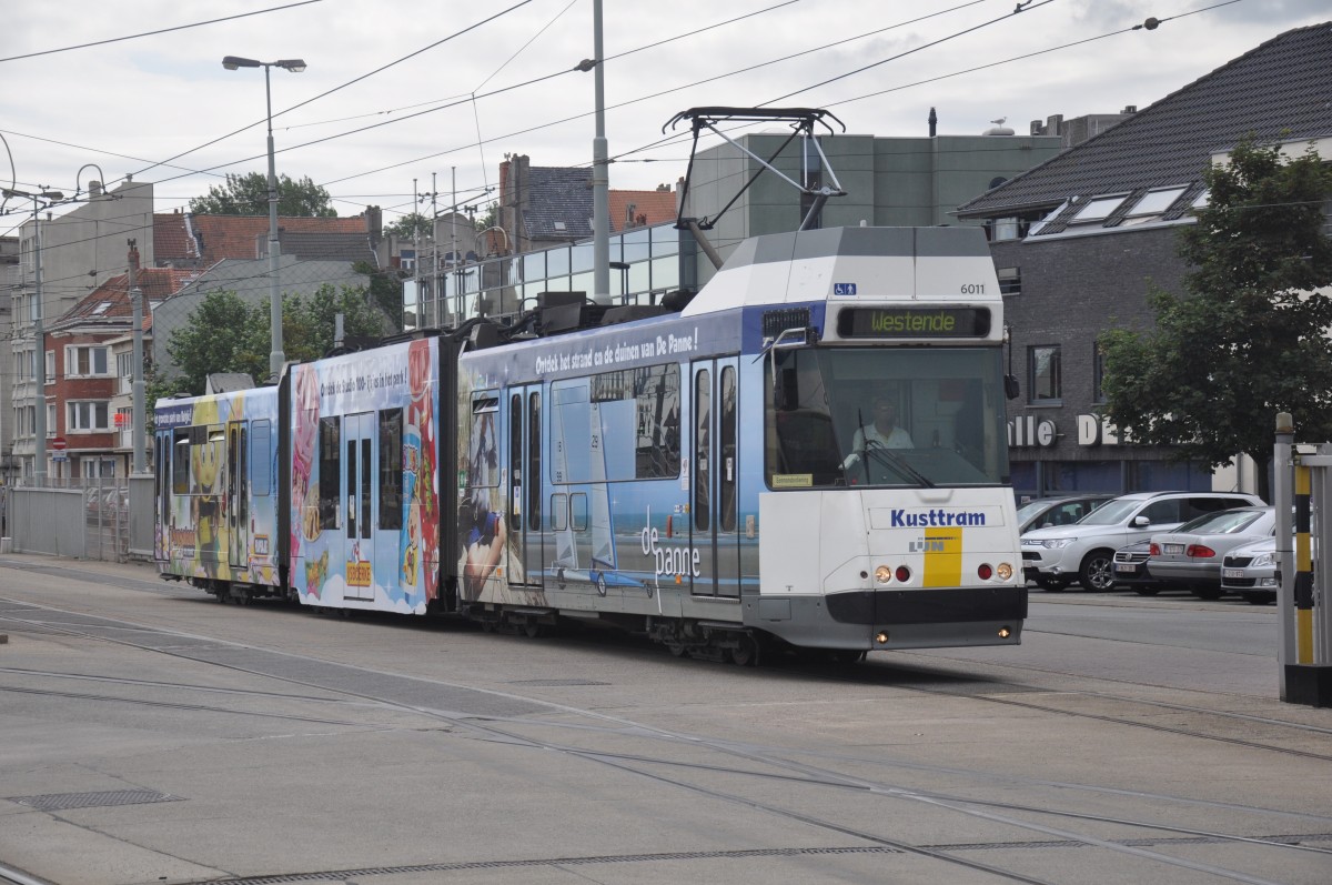 BN 6011 von De Lijn mit Werbung für De Panne und Plopsaland aufgenommen 03/08/2014 am Bahnhof von Oostende