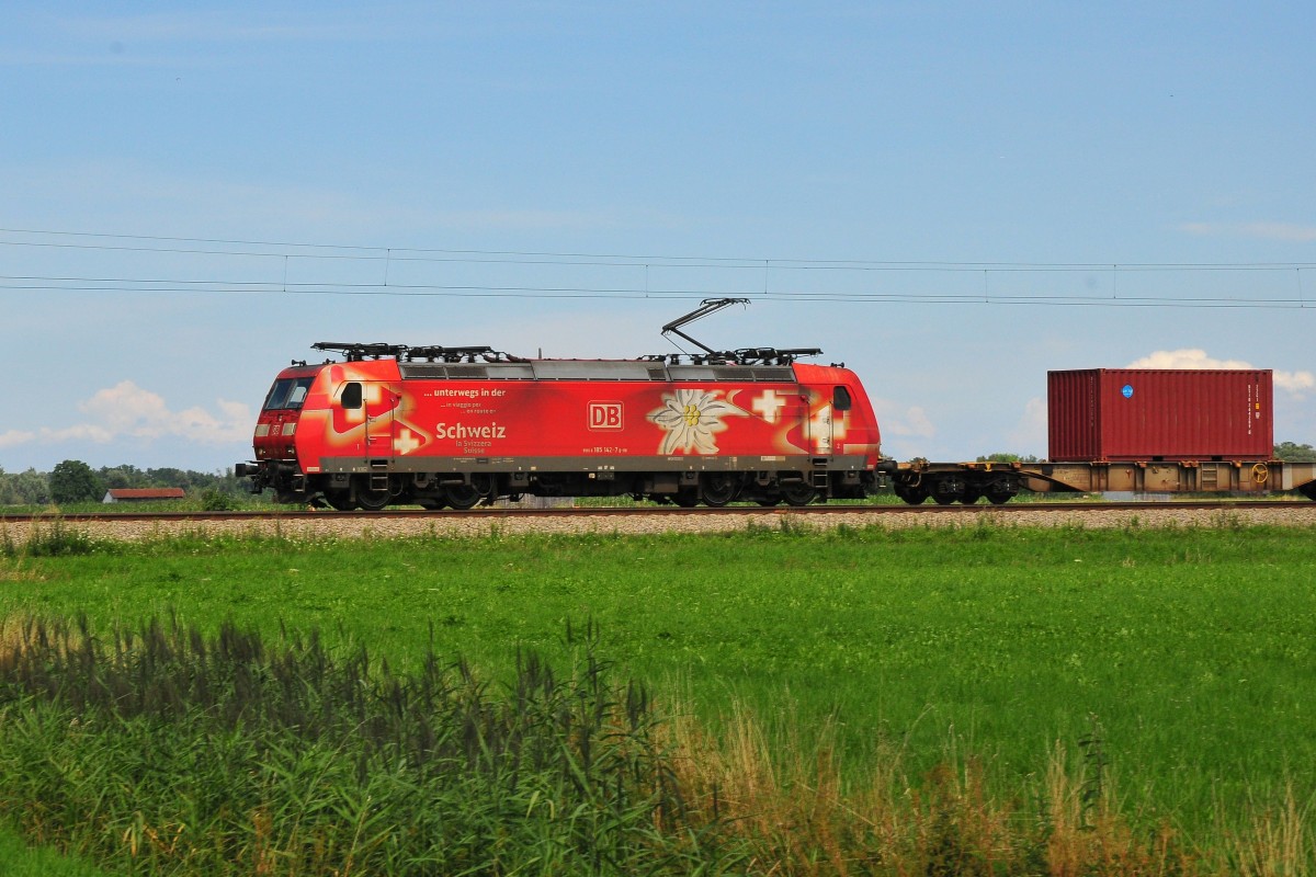 Die 185 142-7 "Edelweiß" am 02.08.2014 in in Übersee am Chiemsee.