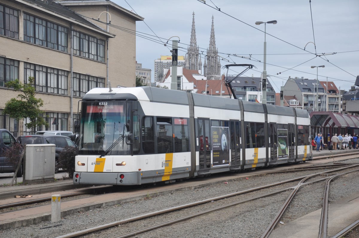 Hermelijn 6332 von De Lijn Gent auf dem Weg zum Kehrschleife, aufgenommen 03/08/2014 am Bahnhof Oostende