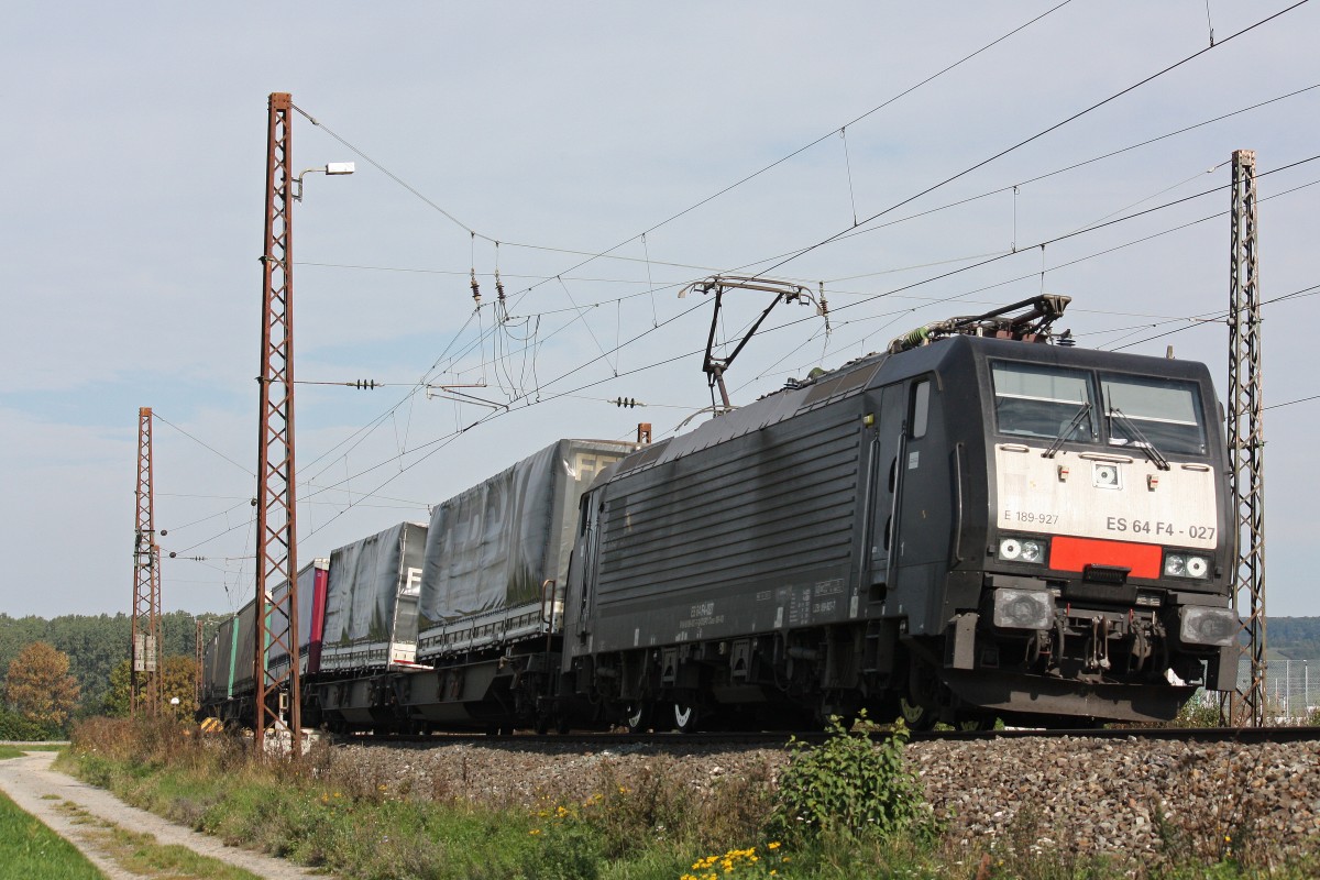 MRCE Dispolok/TXL ES 64 F4-027 am 27.9.13 mit einem KLV in Retzbach-Zellingen.