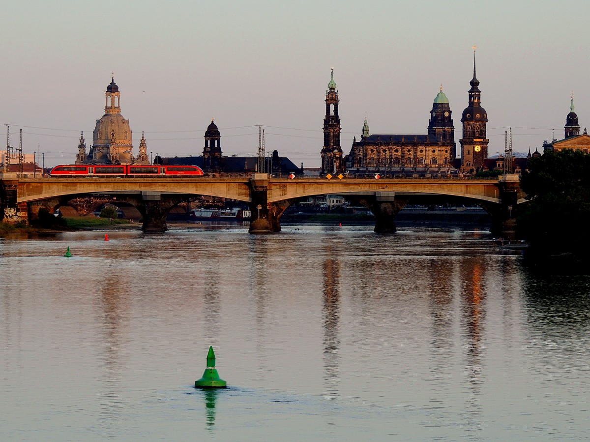 S2, steuert am Abend Richtung Bahnhof Dresden-Neustadt; 140609