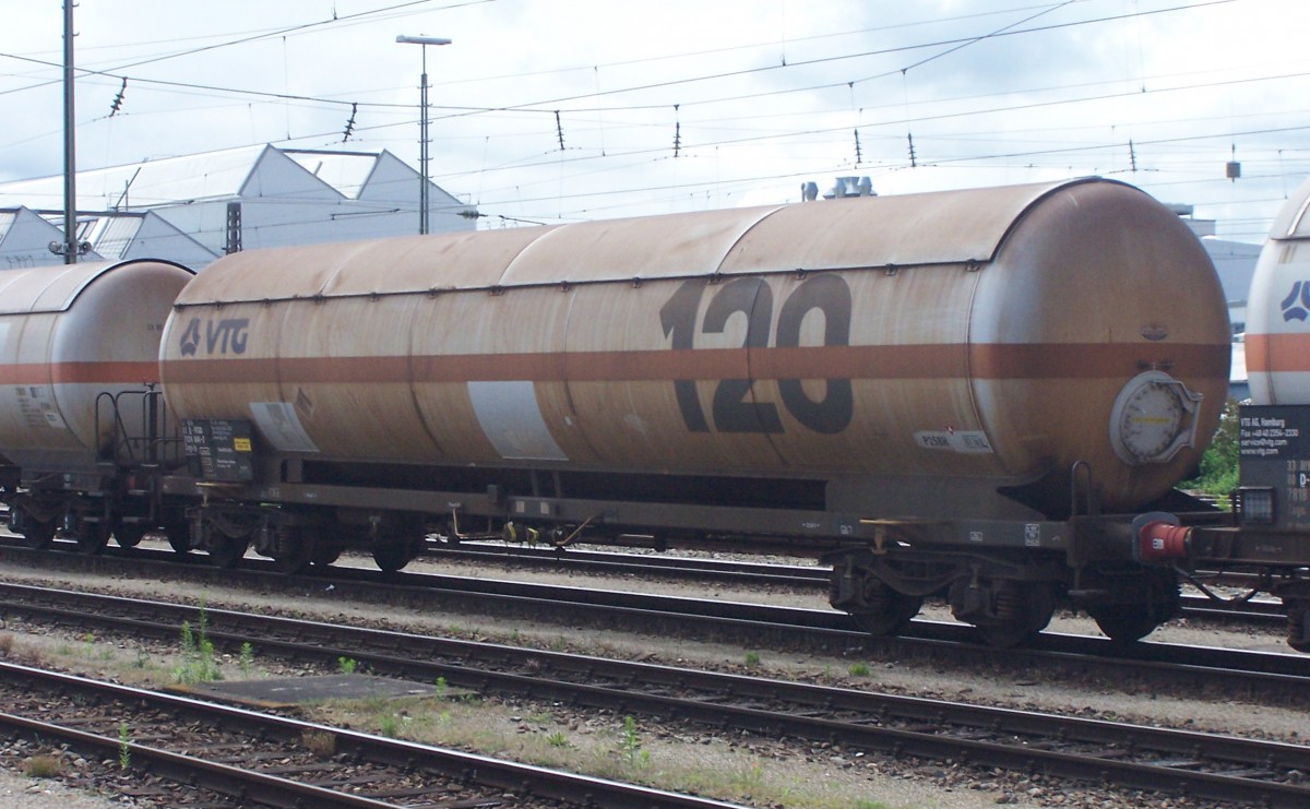 Zags mit der Wagennummer 37 RIV 80 D-VTGD 7824 044-7. Stand mit vielen anderen Gaskesselwagen in langer Reihe im B f. Donauwörth, auch am 11.7.14. Sein Werbeanstrich fand sich auch in einigen Modellbahnkatalogen...