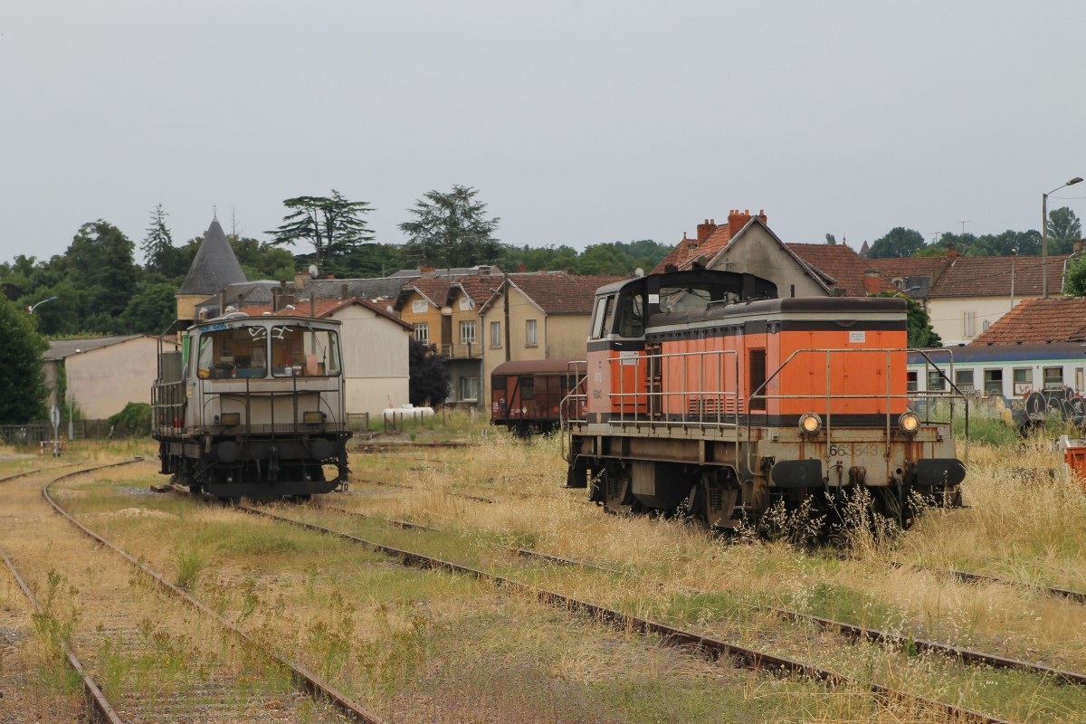 73728 mit TER 865809 Perigueux-Agen auf Bahnhof Le Buisson am 3-7-2014.