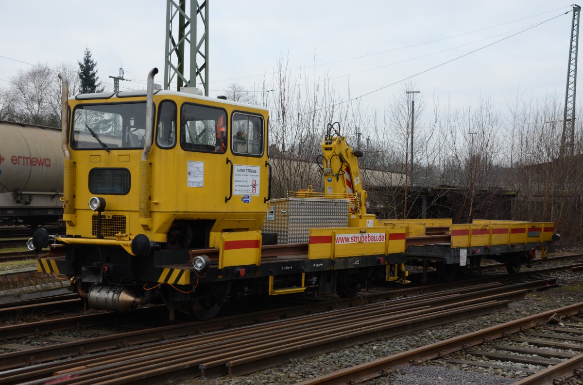 Am 20.02.2014 stand an der Ladestrasse im Stader Bahnhof das schwere Nebenfahrzeug GKW 53 (Gleiskraftwagen Nr. 53 0715 5) mit dem schweren Nebenfahrzeug Kla 03 (Gleiskratwagenanhänger Nr. 03 0323 5) und gönnten sich eine mittägliche Ruhepause.