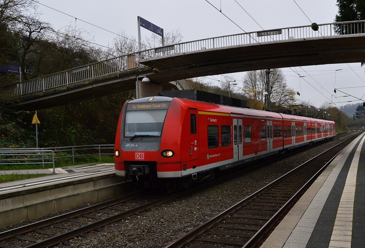 Am späten Sonntagvormittag fuhr der 425 214-4 Seckach als S2 nach Homburg (Saar). Neckargerach den 30.11.2014