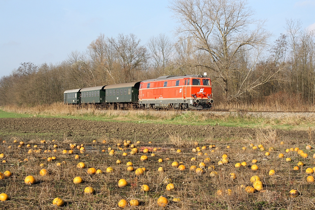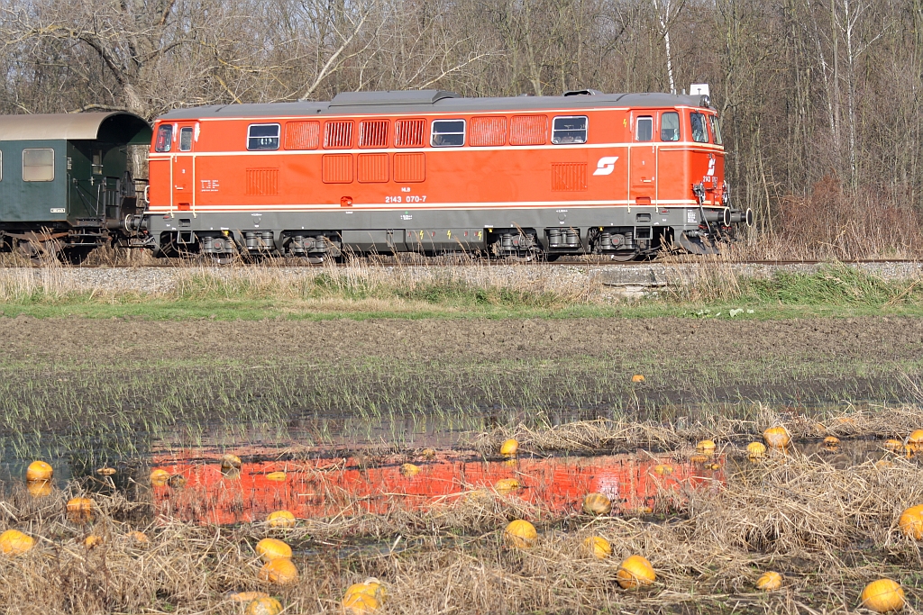 NLB 2143 070-7 am 23.November 2014 mit dem SR 17918 zwischen Blaustauden und Laa a.d. Thaya Stadt beim Strecken-KM 135,0.