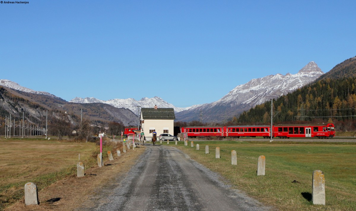 R 1945 (Scuol-Tarasp-Pontresina) mit Schublok Rhb 626 bei Bever 29.10.14