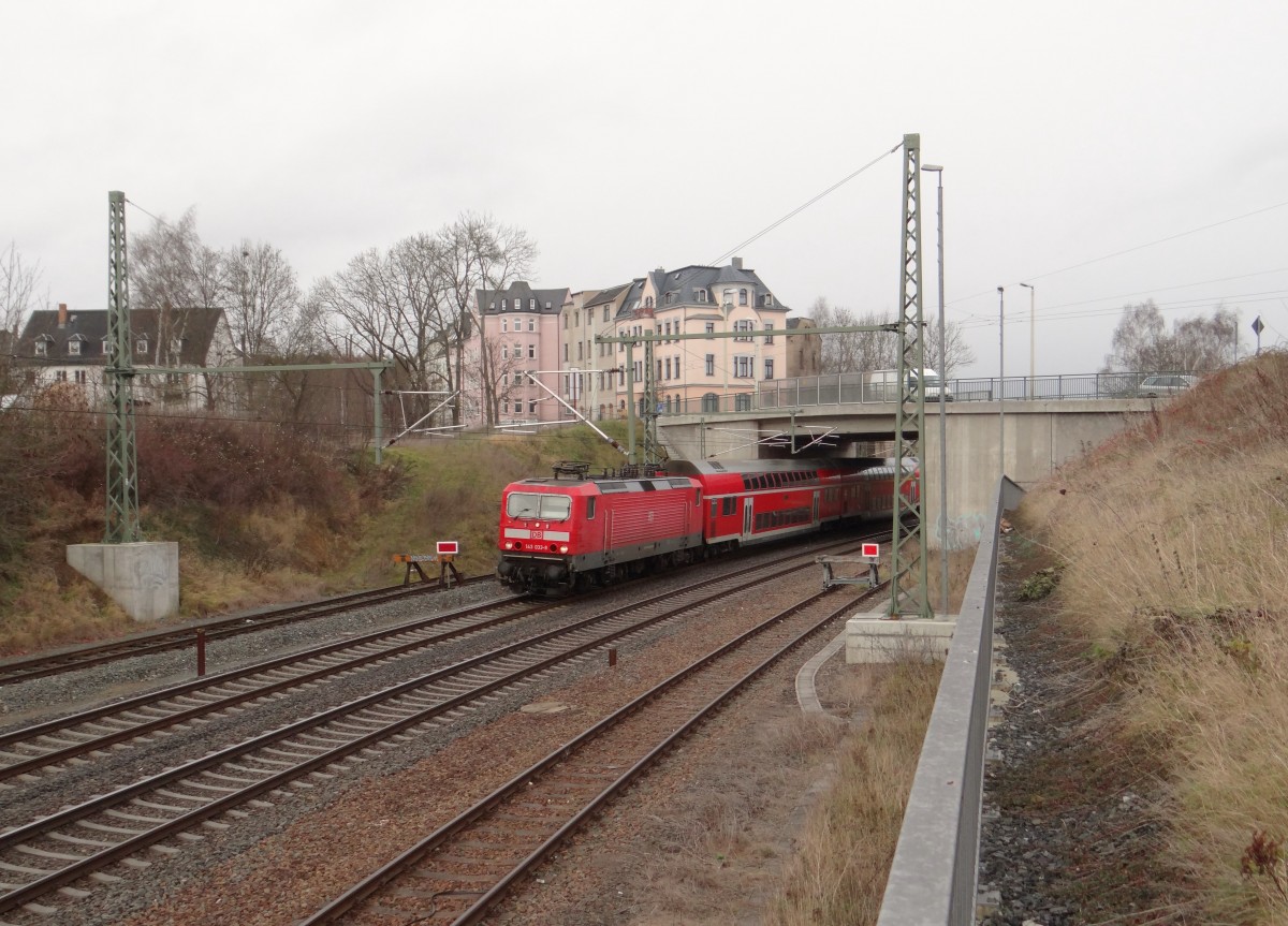 143 033 zu sehen bei der Einfahrt in Plauen/V. oberer Bahnhof am 11.12.14.