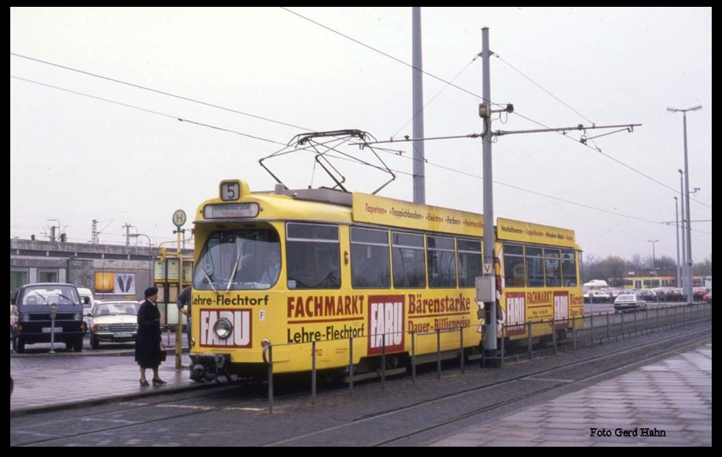 Düwag Tram 7752 der Linie 5 am 5.4.1989 vor dem Hauptbahnhof in Braunschweig.