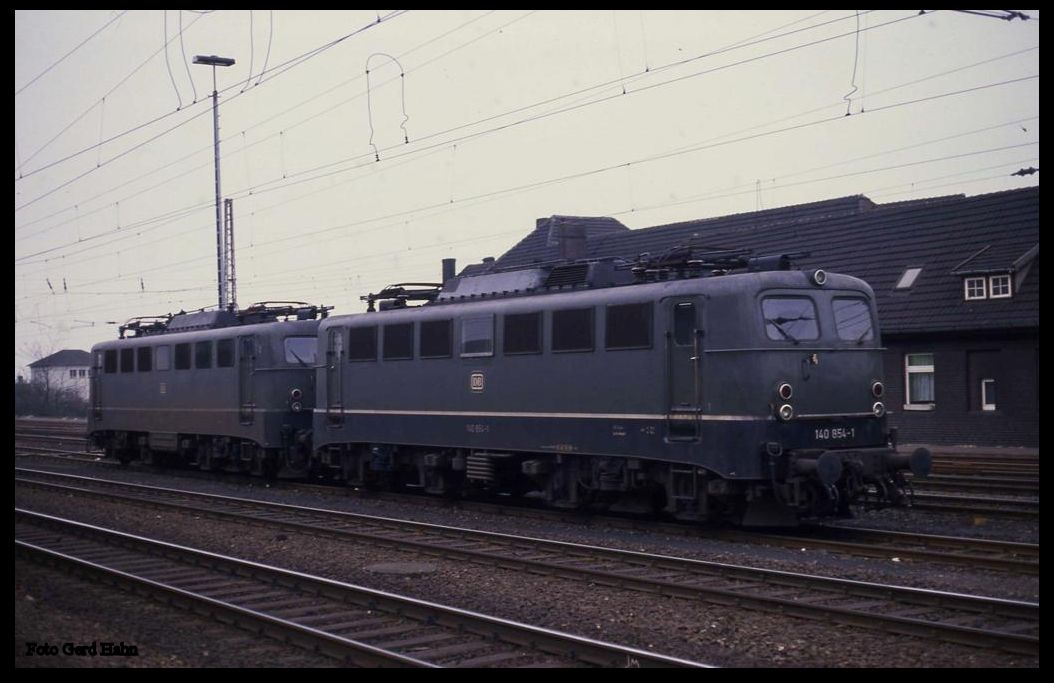 140854 und 140824 im Bahnhof Löhne am 5.4.1989 um 8.50 Uhr.