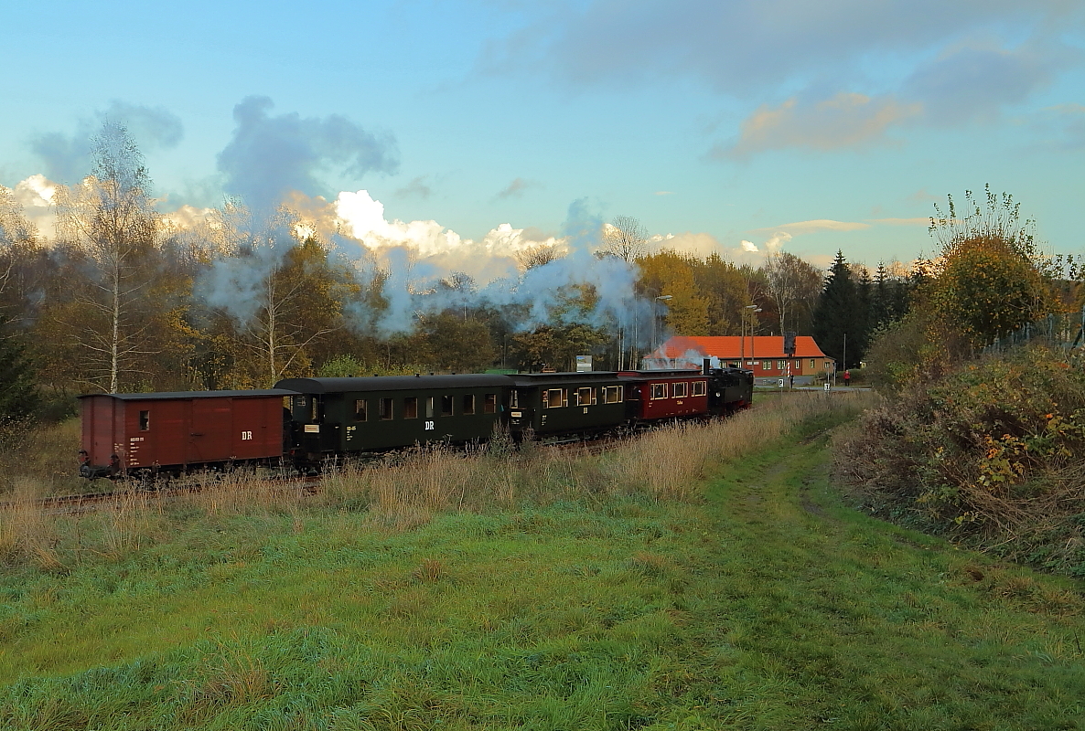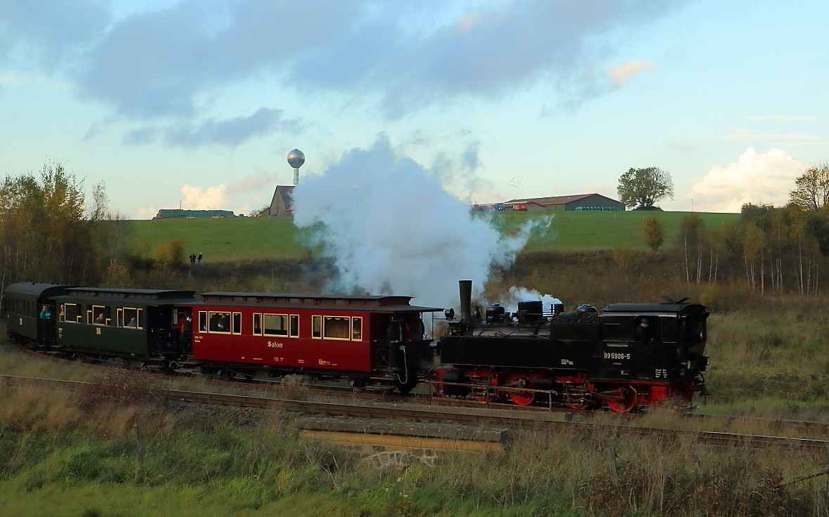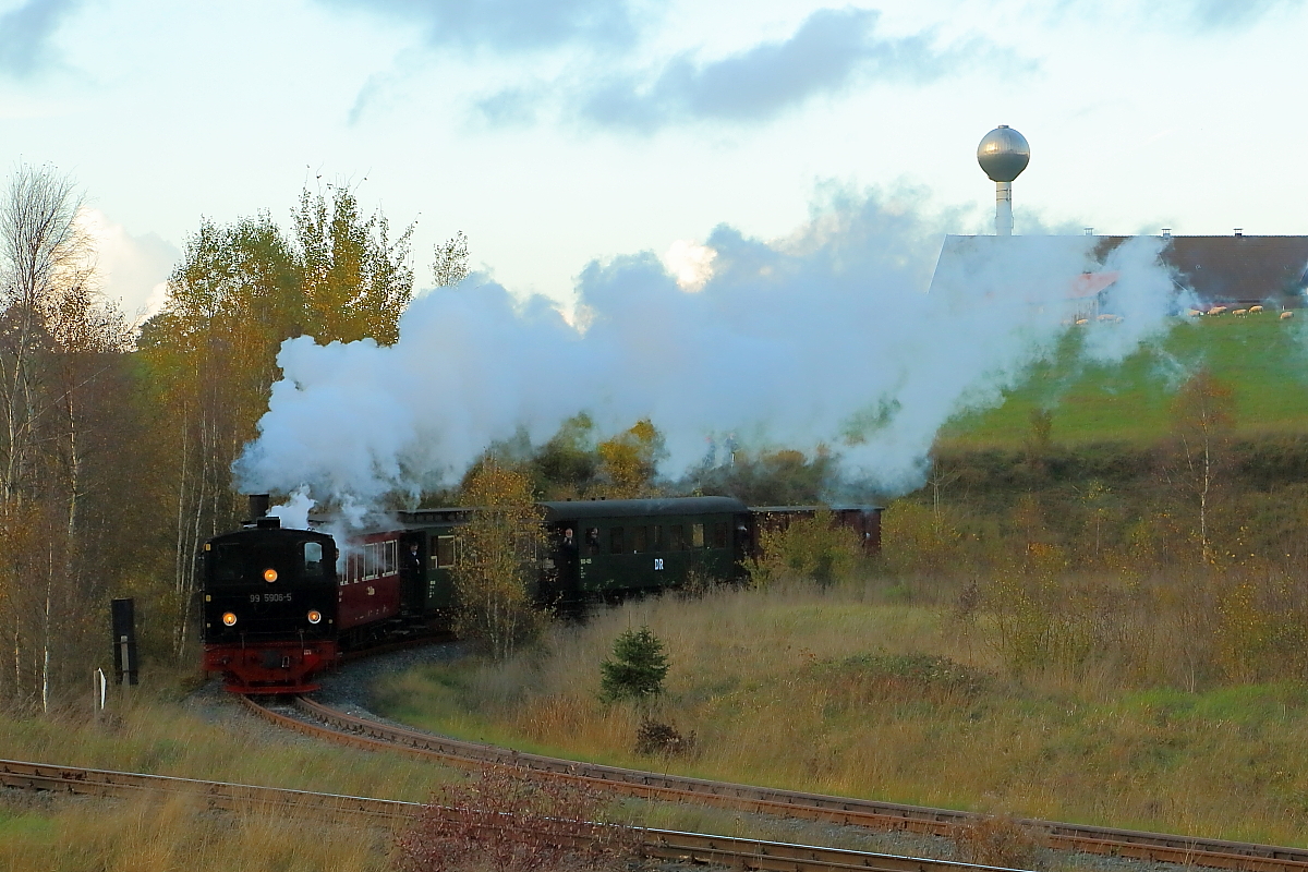 Durchfahrt von 99 5906 mit IG HSB-Sonderzug durch die Stieger Wendeschleife am 17.10.2014. (Bild 1)
