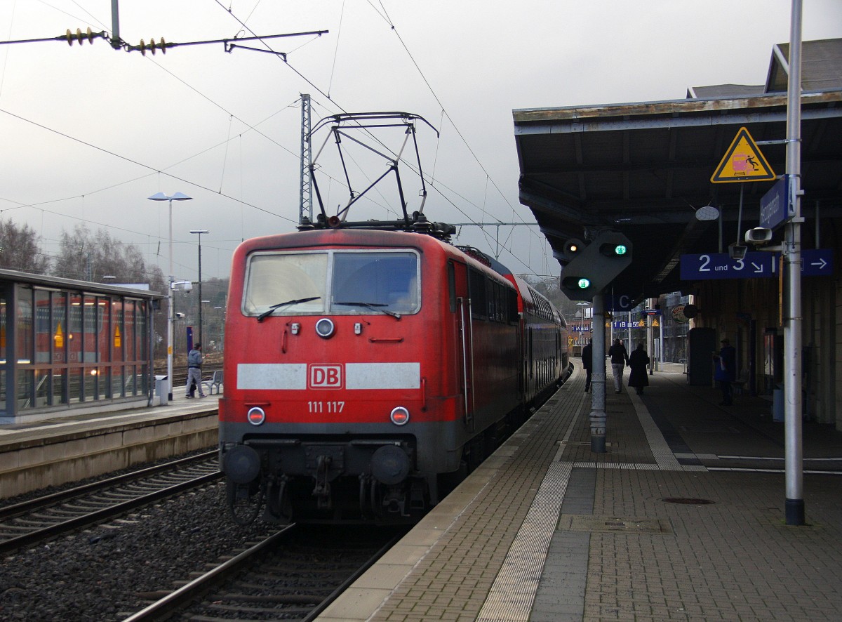 Ein Nachschuss von der 111 117 DB  schiebt den RE4 aus Aachen-Hbf nach Dortmund-Hbf und kommt aus Richtung Aachen-Hbf,Aachen-Schanz,Aachen-West,Laurensberg,Richterich,Kohlscheid und hilt in Herzogenrath und fährt in Richtung Hofstadt,Finkenrath,Rimburg,Übach-Palenberg,Zweibrüggen,Frelenberg,Geilenkirchen,Süggerrath,Lindern,Brachelen,Hückelhoven-Baal,Baal,Erkelenz,Herrath,Beckrath,Wickrath,Rheydt,Mönchengladbach,Neuss.