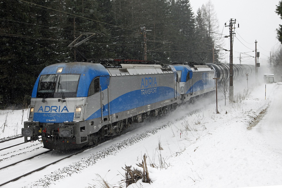 1216 920 + 1216.... haben am 29.12.2014 mit einem Güterzug soeben das Einfahrsignal des Bahnhofes Semmering passiert.