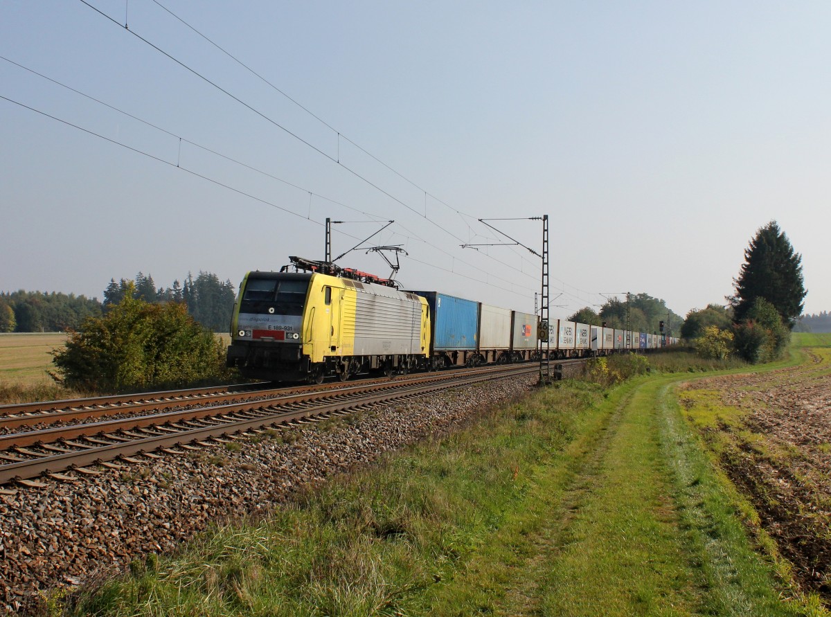 Die ES 64 F4-031 mit einem Containerzug am 08.10.2013 unterwegs bei Batzhausen.