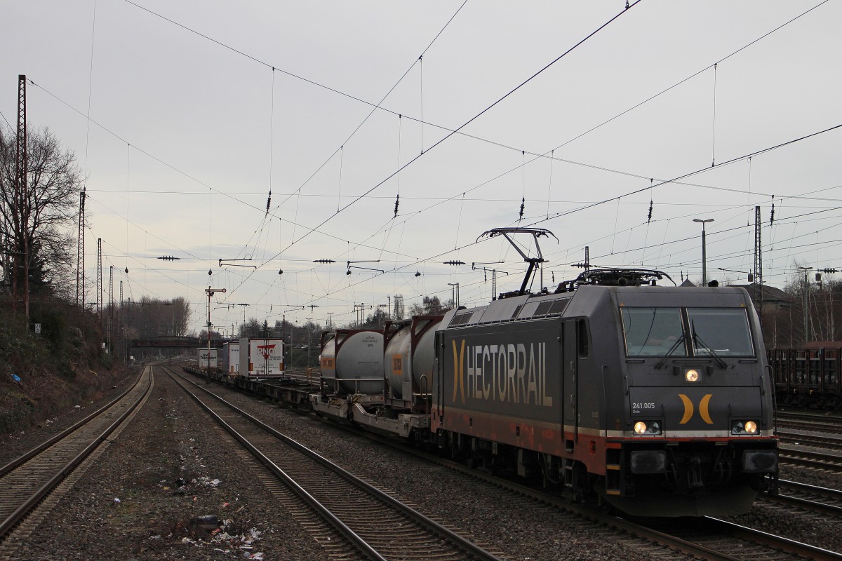 Hectorrail 241.005  solo  am 20.12.13 mit einem KLV in Düsseldorf-Rath.