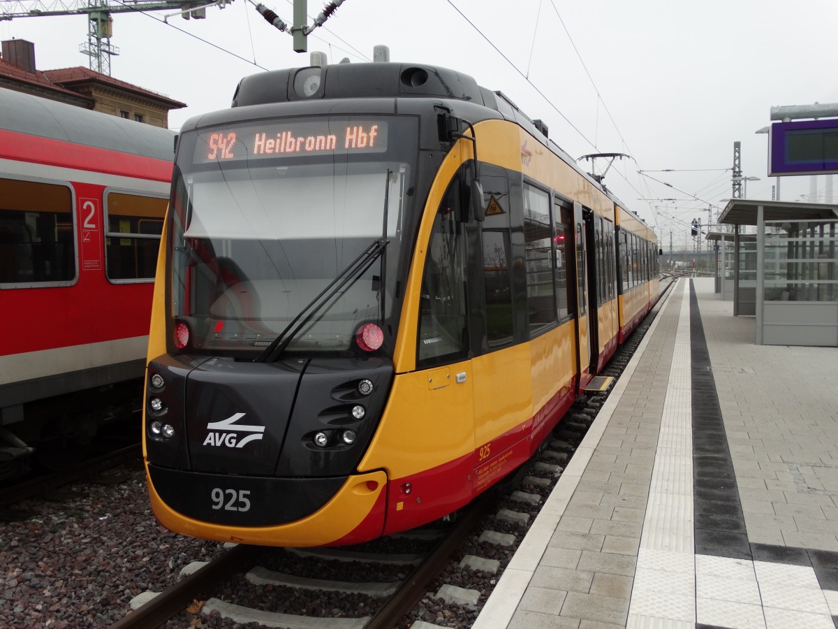 AVG Bombardier Flexity Swift (Wagen 925) als S42 am 04.12.14 in Neckarsulm Bhf