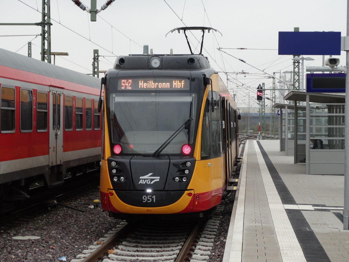 AVG Bombardier Flexity Swift (Wagen 951) am 04.12.14 als S42 in Neckarsulm