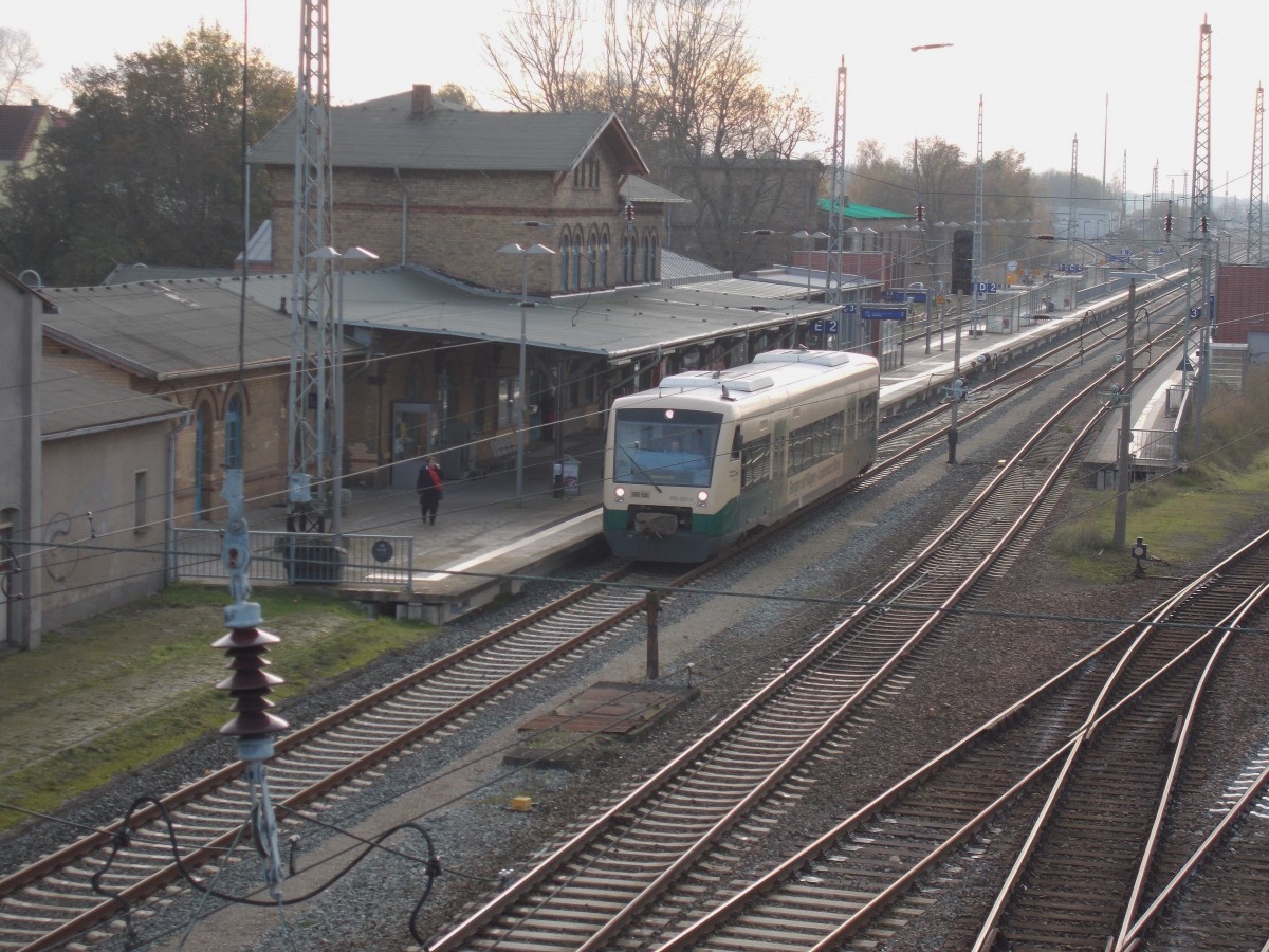 612 655 und 612 651 fahren am 30.11.2014 mit dem RE 3456 durch Zwickau-Pölbitz. Am Tag der Aufnahme waren es noch 13 Tage bis zur Deadline wo die VT 612 auf der KBS 510 verschwinden werden.