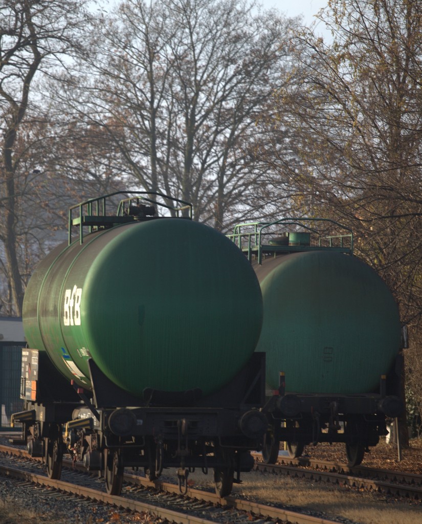 Kesselwagen, abgestellt im Gelände der Spiritusfabrik in Lutherstadt Witteneberg.