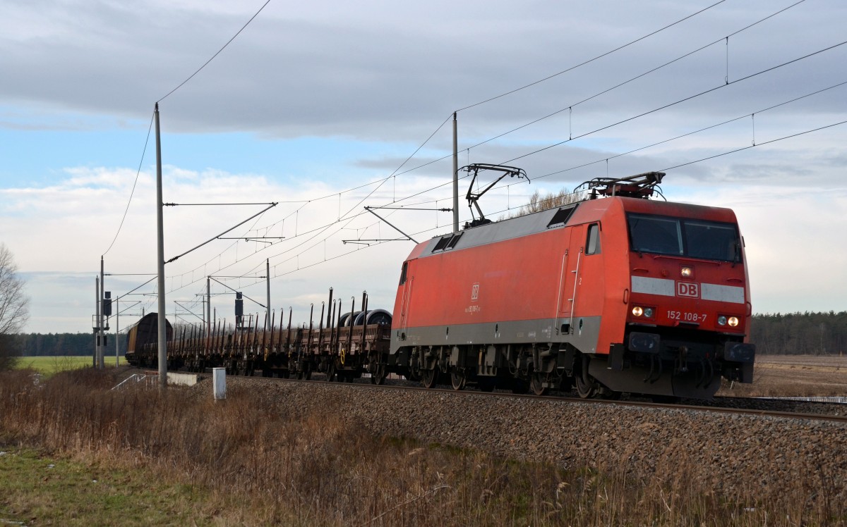 152 108 führte am 06.02.14 einen gemischten Güterzug durch Burgkemnitz Richtung Wittenberg.