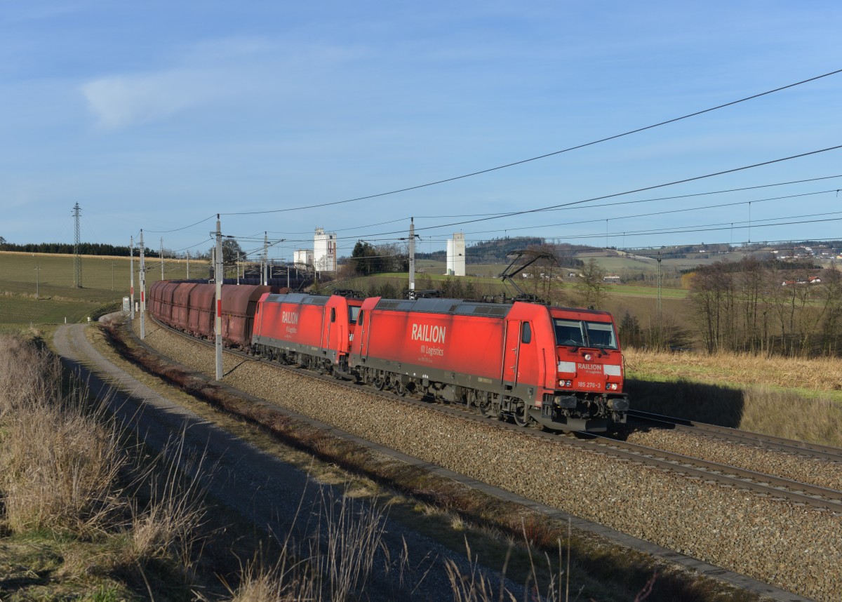 Eine BR 185 mit Lkw wagen, Rangiert in Ludwigsfelde-Birkengrund am 3.02.2014. Zu diesen Bild gibt es ein Video auf YouTube unter: