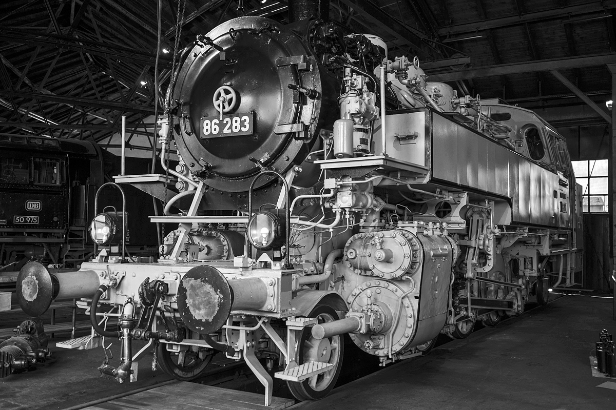 01 150 wurde soeben auf der Drehscheibe im DDM (Deutsches Dampflokomotiv-Museum) gedreht und rangiert jetzt wieder an den Zug um über die Schiefe Ebene nach Marktschorgast zu fahren.