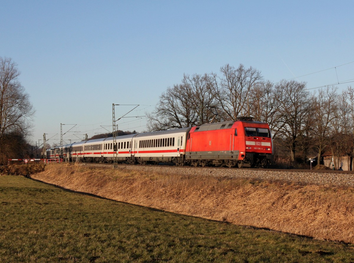Ein IC mit 200 km/h mit einer BR 101 in Ludwigsfelde-Birkengrund nach Prag Hbf. am 03.02.2014. Zu diesen Bild gibt es ein Video auf YouTube unter: