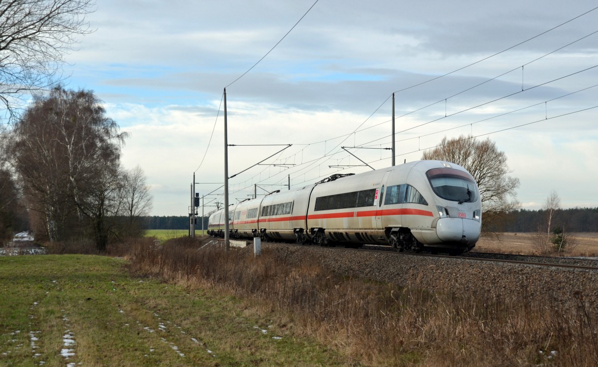 ICE T (BR 411) mit 200 km/h in Ludwigsfelde-Birkengrund. am 03.02.2014. Zu diesen Bild gibt es ein Video auf YouTube unter: