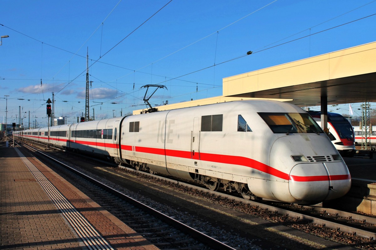 Nachschuss am 11.02.2014 auf den ICE 274 (Basel SBB - Berlin Ostbahnhof), der an diesem Tag Erstazweise aus den ICE 2 Zügen 402 032-7 "Frankfurt (Oder)" (Bild) und dem 402 016-0 "Dessau" an der Spitze, als sie aus Basel Bad Bf gen Freiburg ausfuhren.