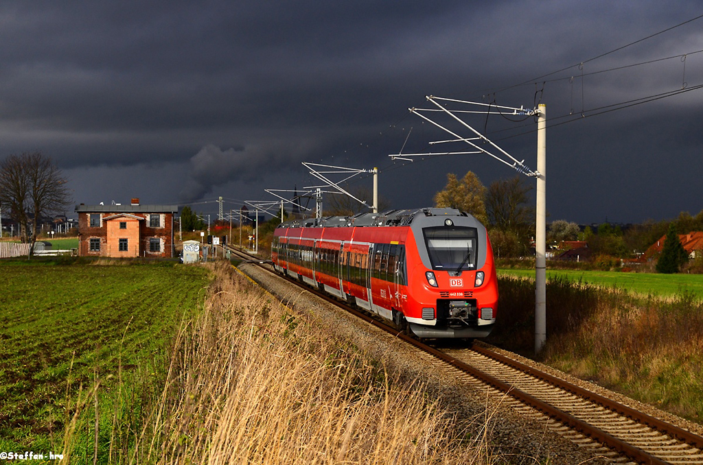 Weltuntergangsstimmung am 10.11.13 als der 442 338 aus Güstrow kommend seinem Ziel Rostock entgegenfährt.